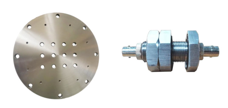 贯通盘安装在油浸式变压器油箱壁上.贯 通盘使用定制不锈钢圆盘,属于测温系统的一部份.